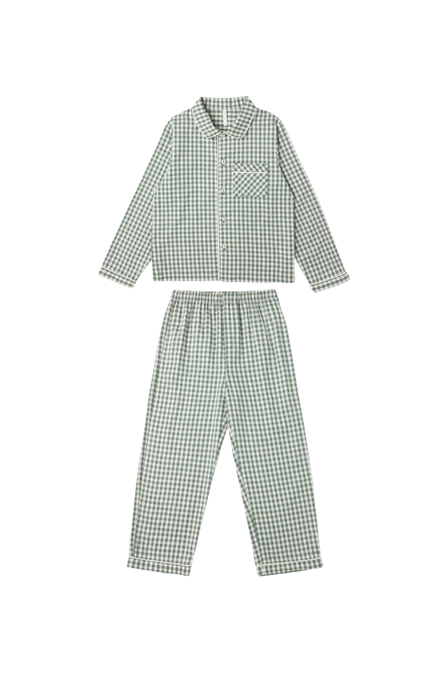 Rylee + Cru Long Sleeve Pajamas - Evergreen Gingham