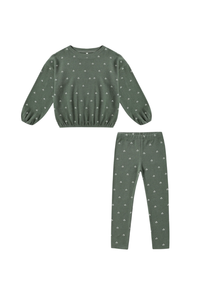 Rylee + Cru Spongey Knit Set - Evergreen Ditsy